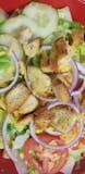 Capacola, salami,ham, and provolone cheese on a bed of lettuce. All of our salads are made with romaine lettuce with sliced cucumbers, tomatoes, red onion, croutons, and cheddar cheese. Served with garlic knots.